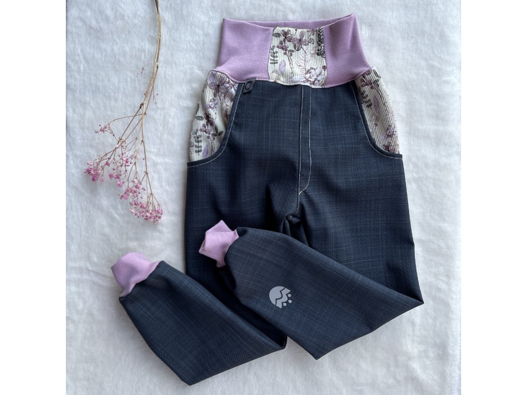 Od velikosti 92/98 velké funkční kapsy s obrázky travin z el. bavlny na předním díle, minimum švů v nohavicové části. Ozdobné prošití barevnou nití a natavené reflexní prvky.