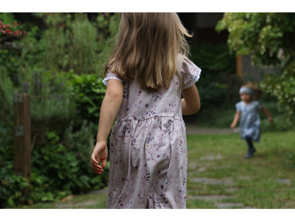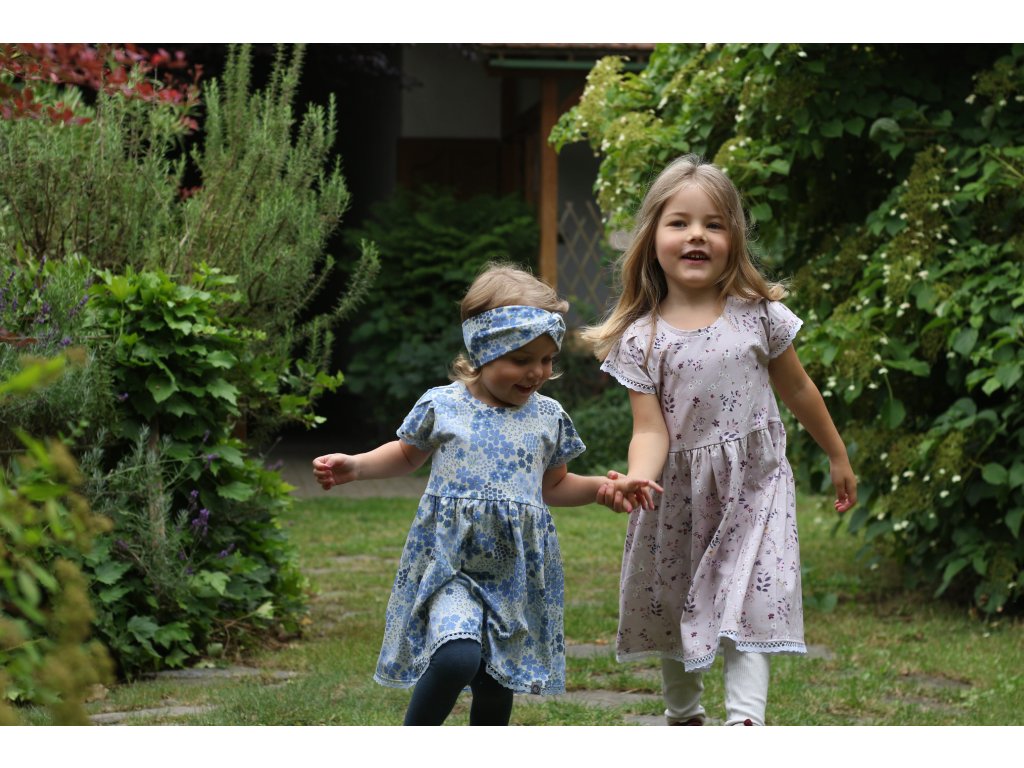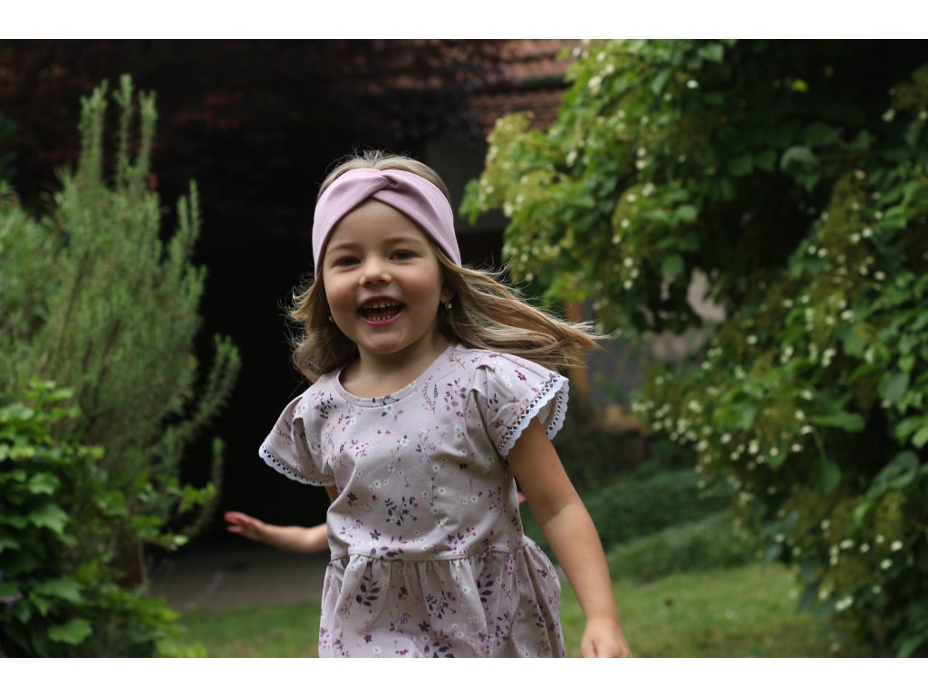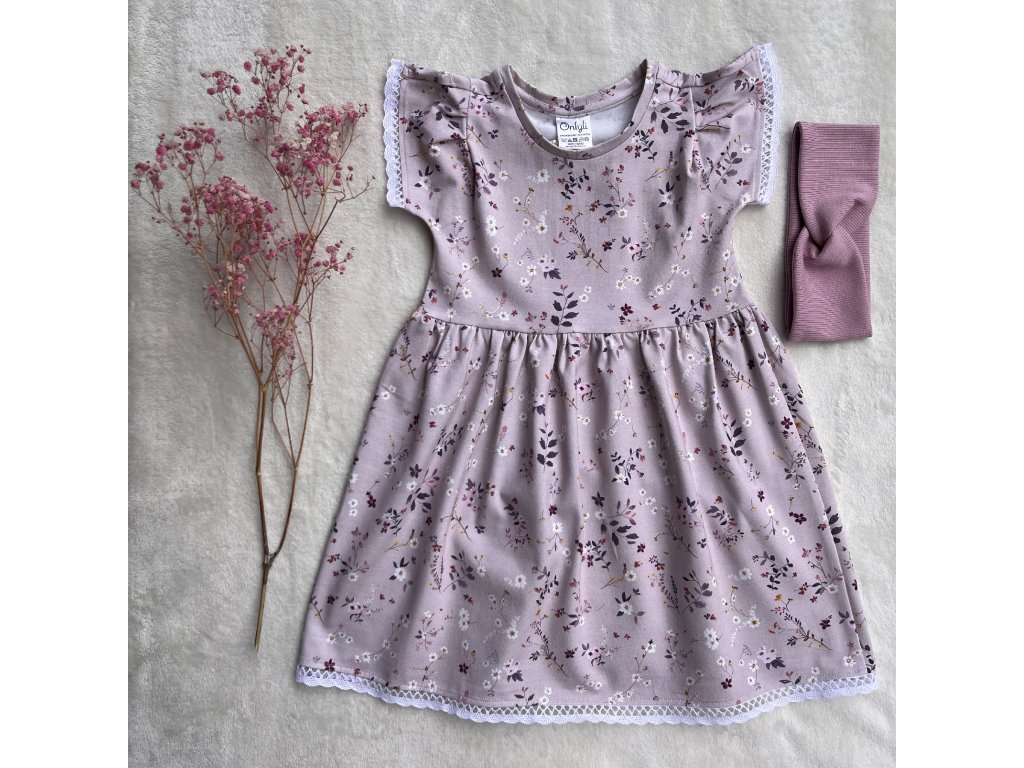 Velmi příjemné šaty z jemného elastického úpletu (95%bavlna, 5% elastan) se vzorem lučních květinek na starorůžovém podkladu.
